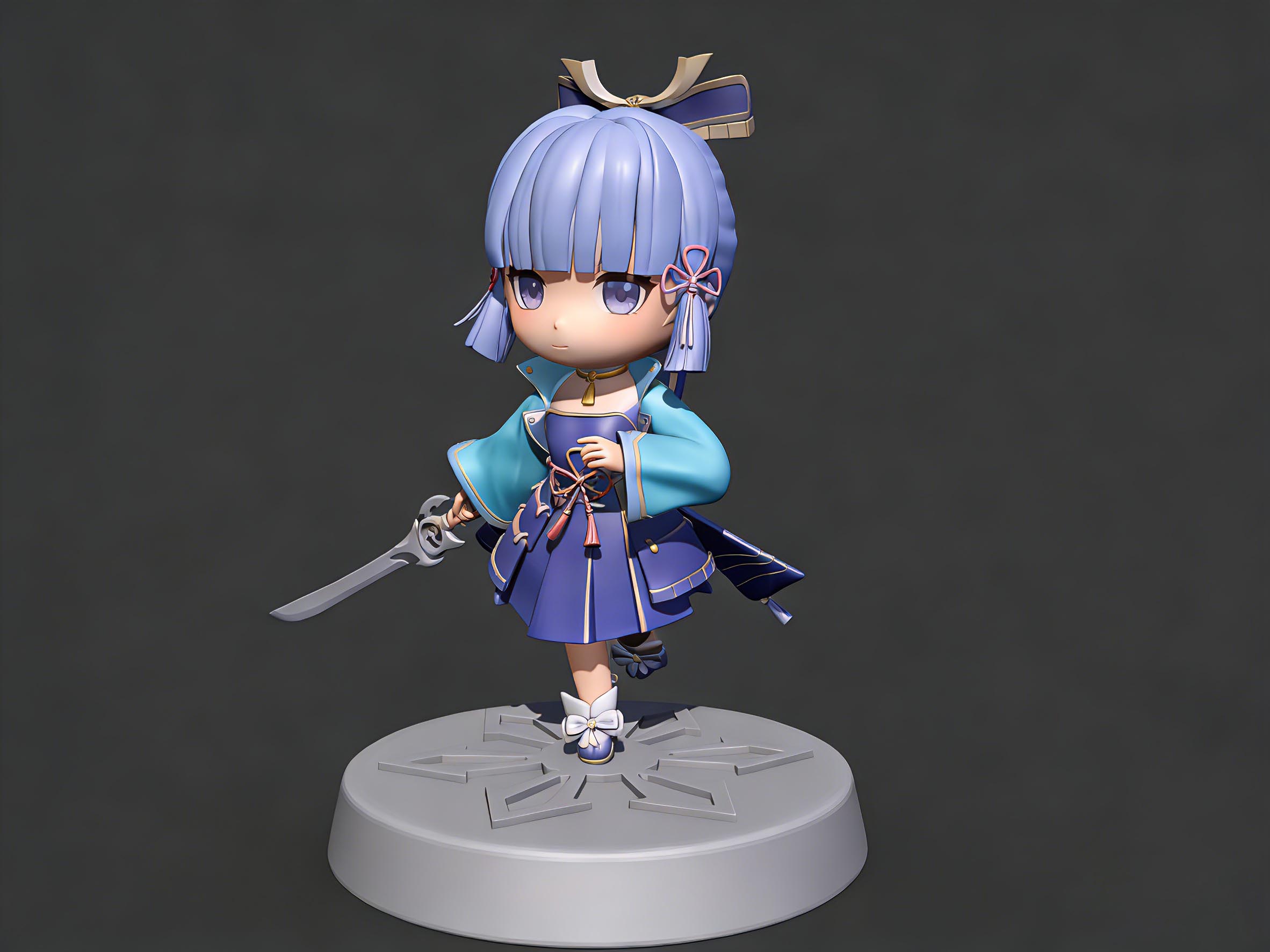 设计理念: 卡通 Q 版 + 写实 CG 建模质感,还原《原神》神里绫华形象,主打「萌系比例 + 精致国风细节」,面向原神玩家、Q 版手办收藏家、二次元爱好者,强调 “小巧灵动的白鹭公主” 可爱感与还原度